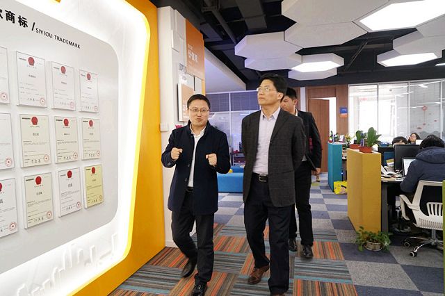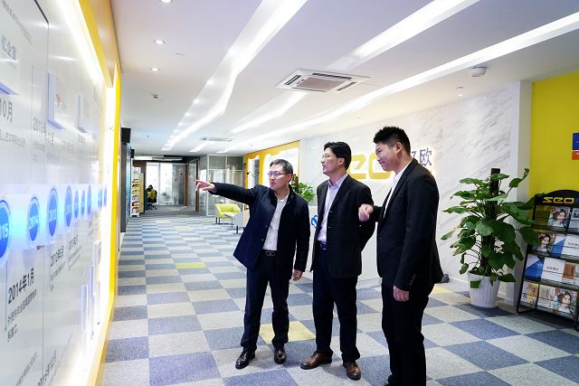 2019年3月15日(周五)下午,西安商務局副局長陳天如蒞臨參觀我司,董事長何旭明熱忱接待,并向陳副局長介紹思億歐公司和產(chǎn)品情況。